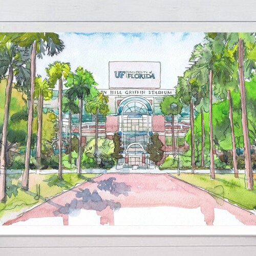 University Of Florida Art Stadium Watercolor Painting Print Etsy